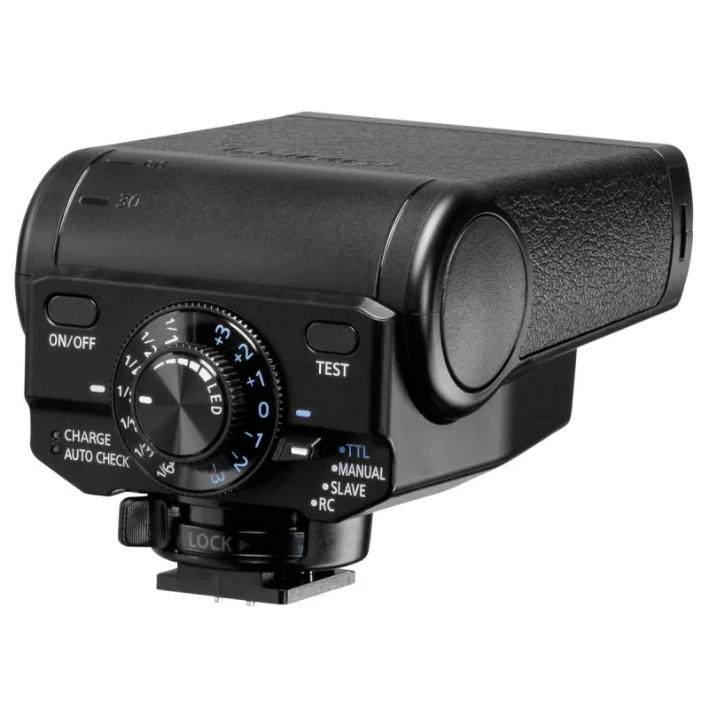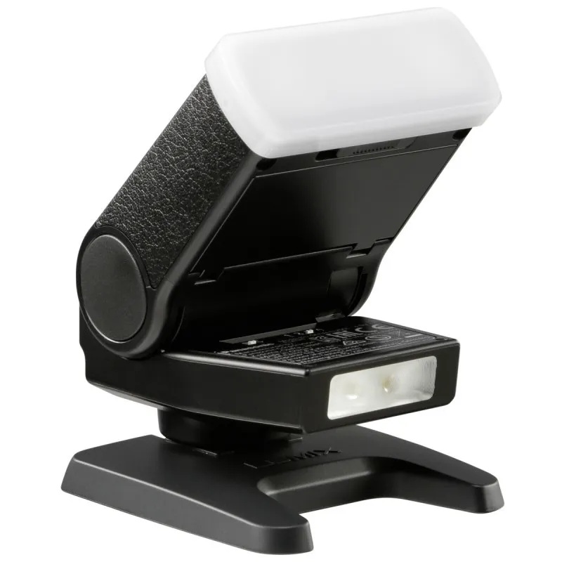 The DMW-FL200LE provides 90-degree vertical bounce lightning and can also be used as an LED light in video recording. It features a wireless shooting capability with WiFi-compatible LUMIX cameras and fast charging in about 3 seconds.