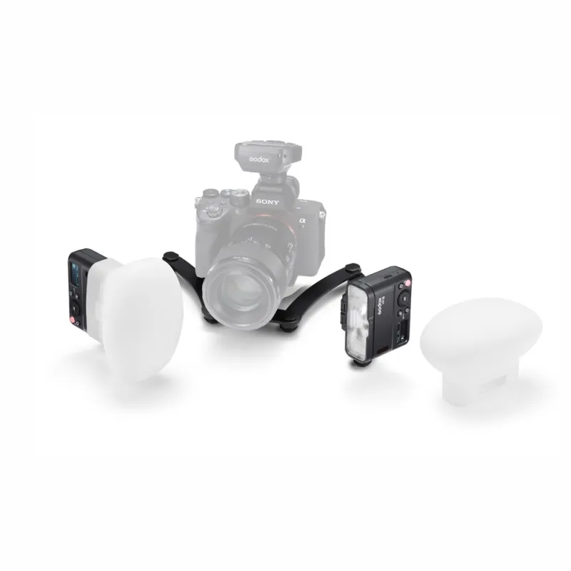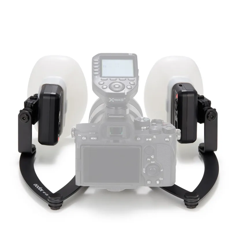 The Godox MF12 DK3 Dental Flash Kit is made specifically for close-up dental photography, making capturing detailed macro shots effortless. With two flash heads, this kit offers the ability to expose teeth at very close range, and thanks to the various mounting options, flexibility is maximized. For added versatility, both flash heads can be simultaneously mounted on the included dental MF DB bracket, specially designed for better dental work.