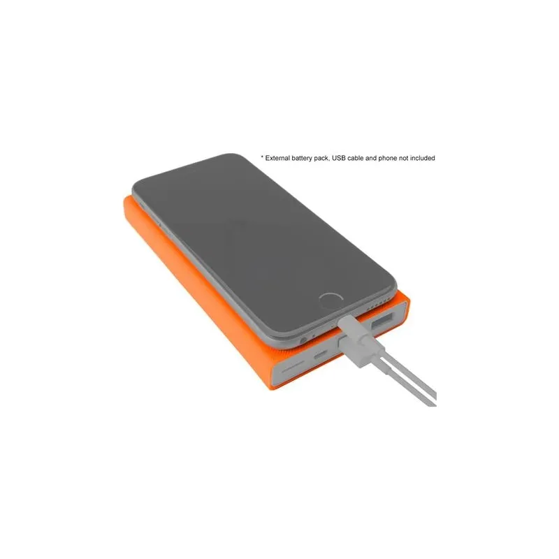 Silikono apvalkalas apsaugo 10,000 mAh akumuliatorių nuo pažeidimų ir nešvarumų.