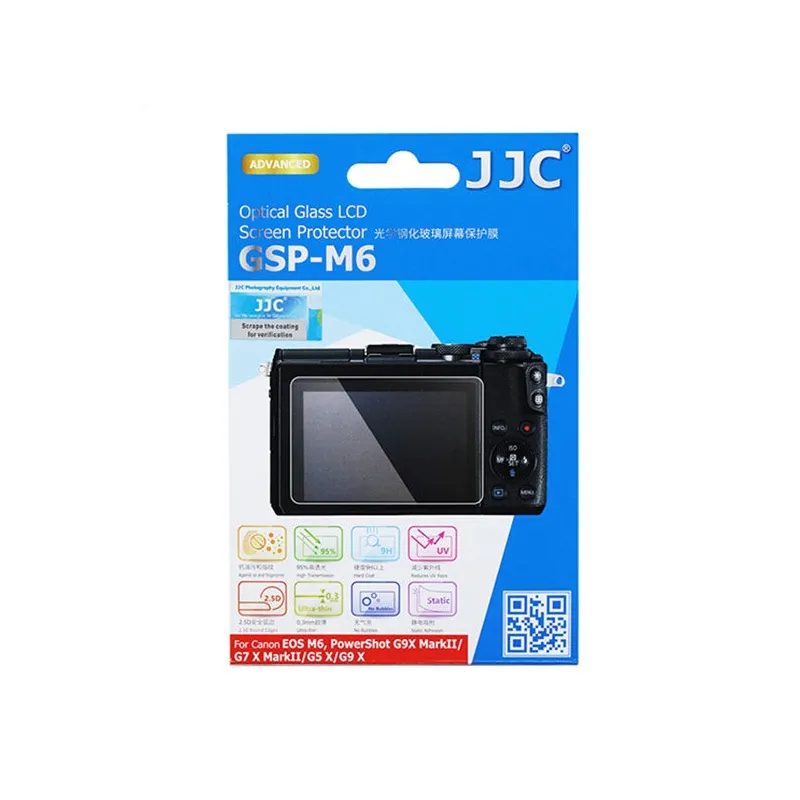 The JJC GSP-M6 LCD Protector protects the display of your Canon EOS M6 system camera, PowerShot G9 X Mark II, G7 X Mark II, G5 X or G9 X compact camera from scratches, dust, fingerprints and other dirt. The screen protector is specially tailored for this camera's display. The screen protector is easy to place and take off again. The material has high light transmission and reflects minimally. All information on the screen therefore remains clearly visible.