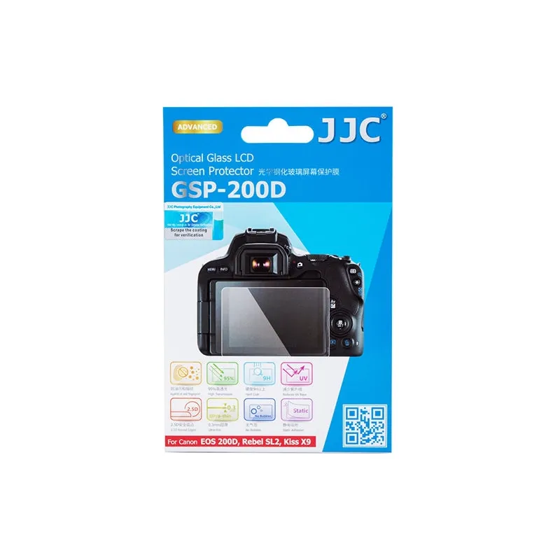 The JJC GSP-200D Screenprotector is an ultra-thin optical glass layer just 0.3 millimetres thick to protect the LCD display of the Canon EOS 200D SLR camera. Thanks to its light transmission of 95%, you maintain good visibility of the information and images on your screen.