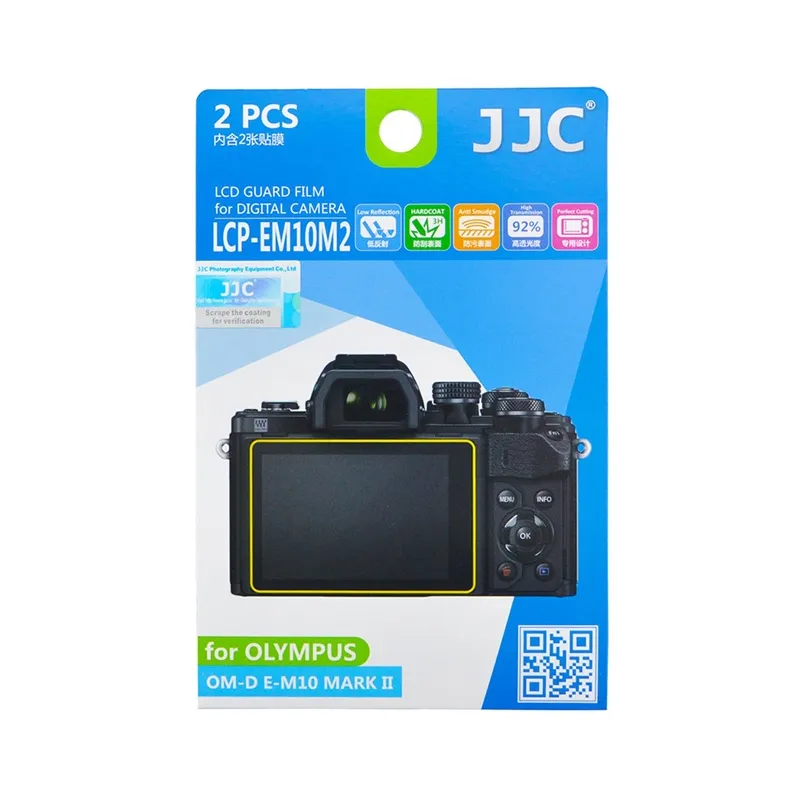 The JJC LCP-EM10M2 Screen Protector is specially tailored for the display of the Olympus E-M10 Mark II system camera. The screen protector is easy to fit and take off again. The foil offers excellent protection against dust, scratches, fingerprints and dirt. All information remains clearly visible as the foil has high light transmission and minimal reflection.