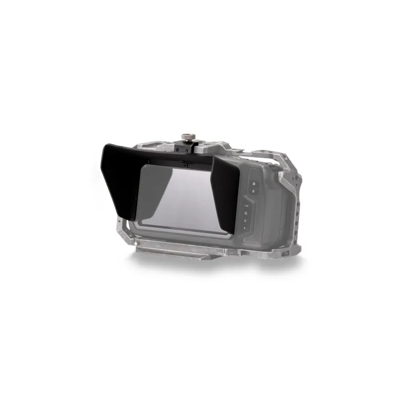 The partial sunhood attaches directly to the back of the BMPCC 4K half and full camera cages to provide a sunshade to your cameras LCD screen when shooting in bright exterior environments.