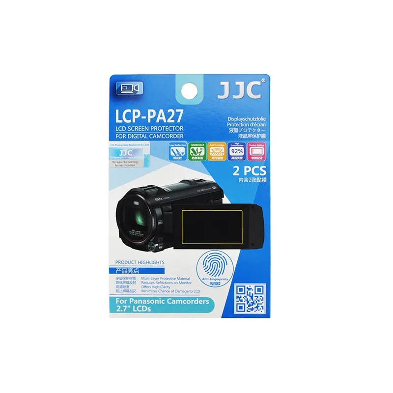 The JJC LCP-PA27 Screen Protector is specially designed to protect the 2.7" LCD display of your Panasonic video camera. This durable screen protector protects your camera's LCD display from the elements, scratches, fingerprints and dust. Thanks to the optically-clear semi-rigid polycarbonate, you have an unobstructed view of your image. The JJC LCP-PA27 is easy to attach and remove.