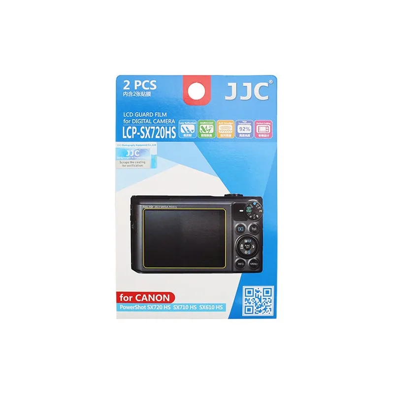 The JJC LCP-SX720HS LCD protector protects the display of your Canon PowerShot SX720 HS, SX710 HS or SX610 HS compact camera from scratches, dust, fingerprints and other dirt. The screen protector is specially tailored for this camera's display. The film is easy to place and take off again. The material has high light transmission and reflects minimally. All information on the screen therefore remains clearly visible.