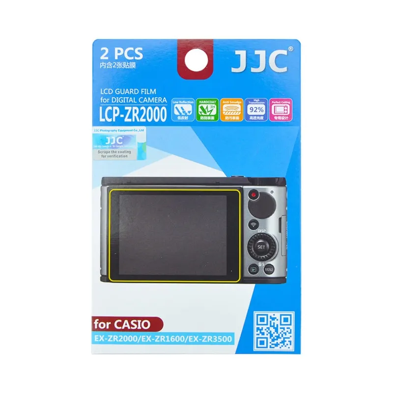 The JJC LCP-ZR2000 Screen Protector protects the display of your Casio EX-ZR3500, EX-ZR2000 or EX-ZR1600 compact camera from scratches, dust, fingerprints and other dirt. The screen protector is specially tailored for this camera's display. The foil is easy to place and remove. The material has high light transmission and reflects minimally. All information on the screen therefore remains clearly visible.