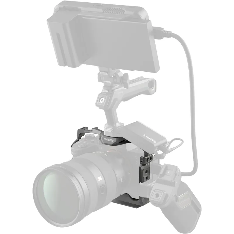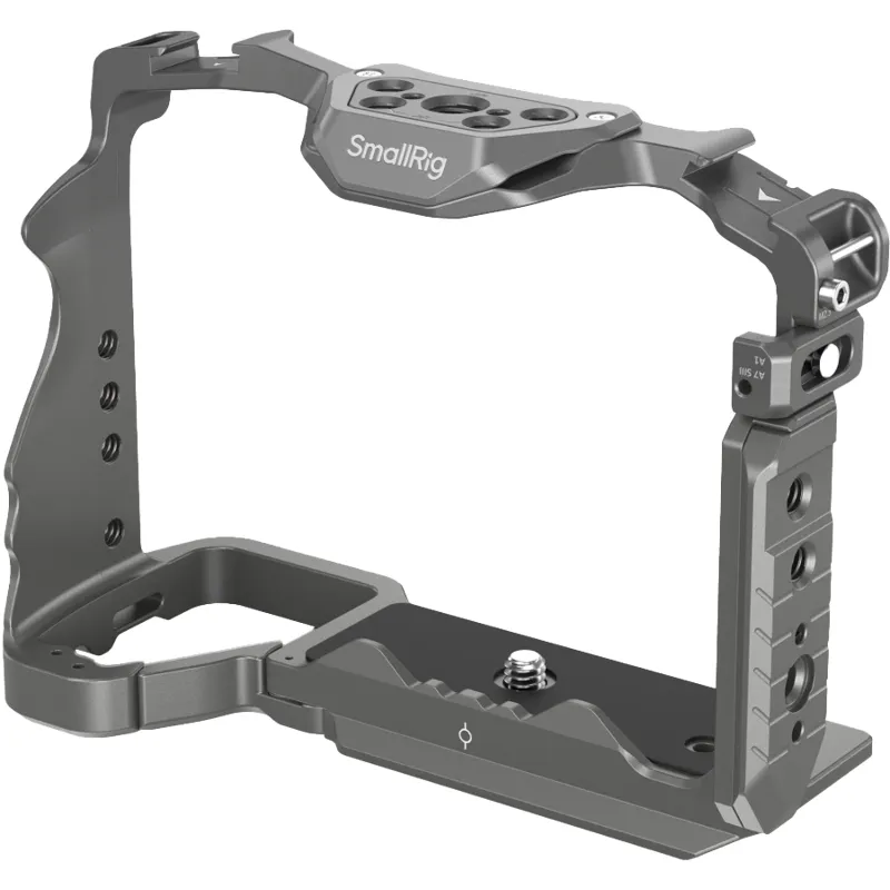 The SmallRig 4481 HawkLock Quick Release Cage for Sony Alpha 7R V / Alpha 7 IV / Alpha 7S III / Alpha 1 / Alpha 7R IV is designed to attach accessories and protect the camera.
