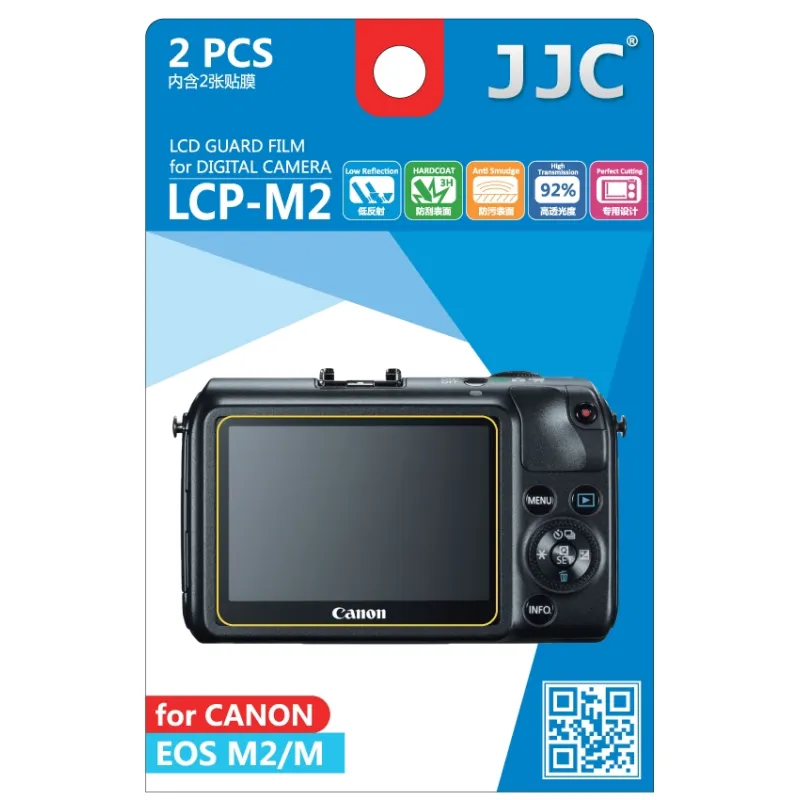 The JJC LCP-M2 LCD protection is specially tailored for the display of the Canon EOS-M and EOS-M2 system cameras. The display protection is easy to fit and remove. The film offers excellent protection against dust, scratches, fingerprints and dirt. All information remains clearly visible as the film has high light transmission and minimal reflection.