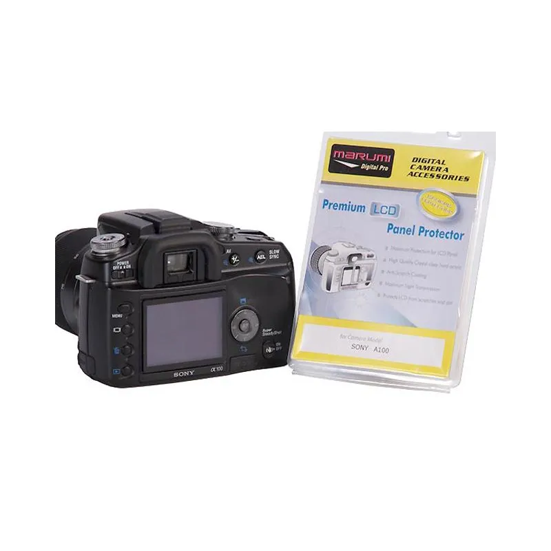 The Marumi LCD Protector is a high quality, acrylic screen protector suitable for the Sony A100, Canon 20D and Olympus E300. This screen protector is designed to protect your cameras LCD screen against dirt, dust and fingerprints. Further, the tough acrylic coating prevents scratches while still letting all of the light of the LCD screen through.