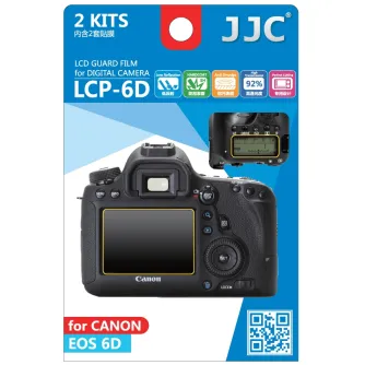 The JJC LCP-6D LCD protector is specially tailored for the displays of the Canon EOS 6D DSLR. The display protection is easy to fit and take off again. The film offers excellent protection against dust, scratches, fingerprints and dirt. All information remains clearly visible as the film has high light transmission and minimal reflection.