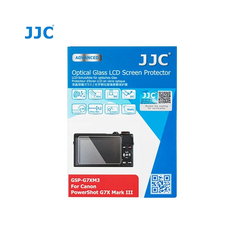 The JJC GSP-G7XM3 Optical Glass Protector is an ultra-thin optical glass layer just 0.3 millimetres thick to protect the LCD display of your Canon PowerShot G7 X Mark III. Thanks to its light transmission of 95%, you maintain good visibility of the information and images on your screen.