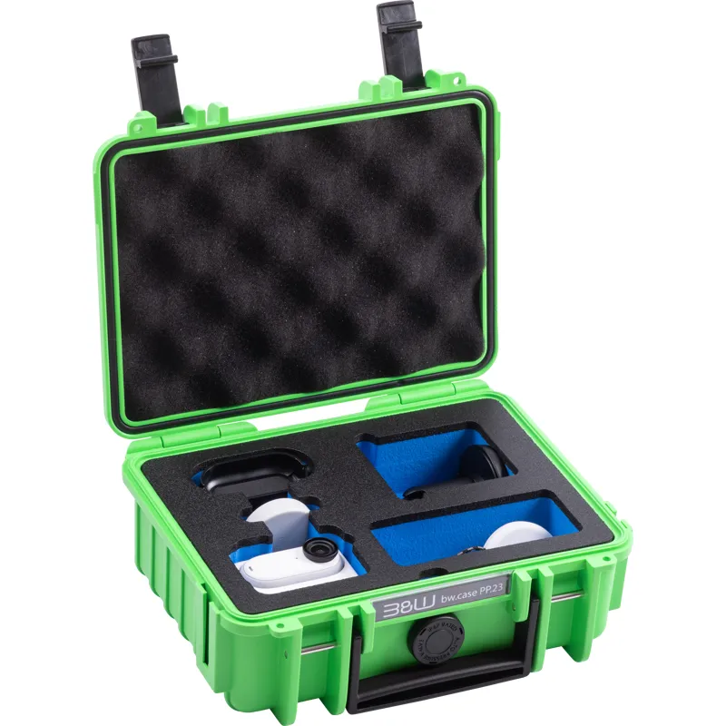 The outdoor.case 500, featuring a foam insert, accommodates your Insta360 GO3 or GO3S camera along with additional accessories, providing optimal protection during transport.
