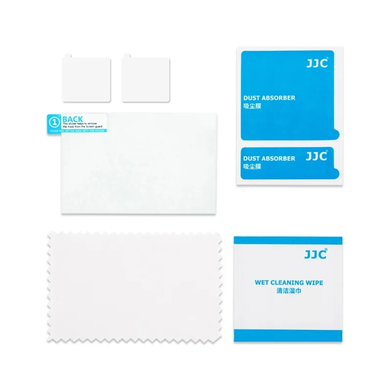 JJC GSP Series Glass Protector is made of a sheet of 0.01" ultra-thin optical glass, featuring maximum protection for your camera's LCD screen from scratches and bumps. The 95% high transmittance restores the original photo and video display on LCD screen. The hardness of surface rates 9H, effectively protects your camera screen from dirt, scratches, sweat, smears and light impact. The glass features multiple layers of protective material which blocks UV rays and only allows visible light in. The protector is resistant to water, oil and fingerprints. The glass adopts a design of 2.5D round edges to avoid edge sharpness. It mounts easily and quickly to your camera’s LCD screen without trapping air bubbles via its static adhesion, and it is easy to remove without leaving sticky residue on your screen.