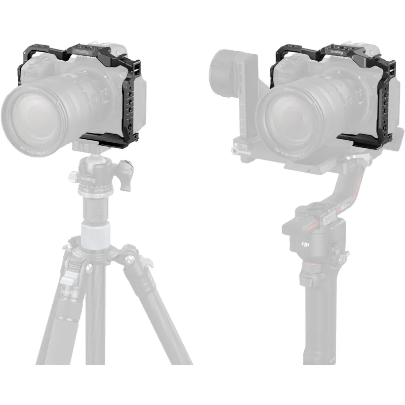 It provides unobstructed access to all camera interfaces, card slots, the flip screen, and the battery door.