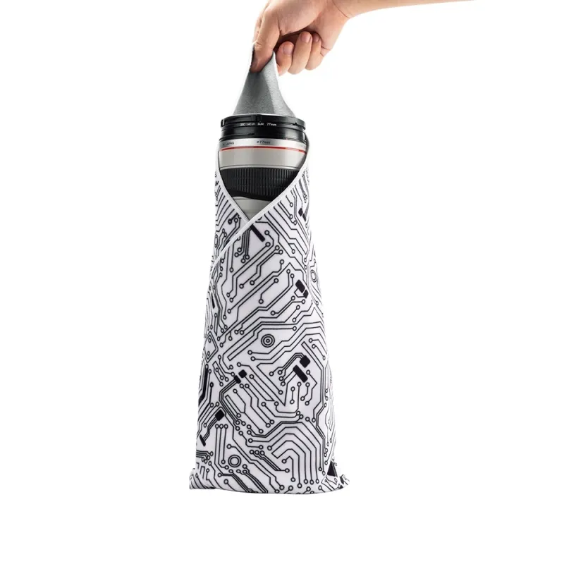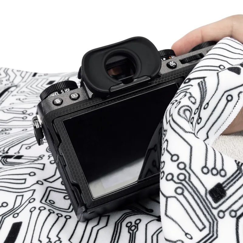 This high quality ripstop fabric wrap, sized at 50x50 cm offers durability without taking up much space. The microfiber exterior cleans screens, while the gentle interior lining safeguards your gear. The fabrics adhesive nature allows versatile and easy wrapping, maintaining its bonding force even after washing. Conveniently includes a storage pouch. ,