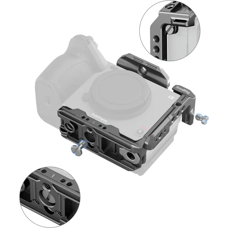 In addition, the cage has built-in 1/4-20 threaded holes, ARRI 3/8-16 Locating Hole, 1/4-20 locating holes, QD socket, and strap slot, and can be expanded with accessories such as SmallRig Magic Arm 3873, Top Handle 2165, Rod Clamp 3598, QD Shoulder Strap, Hand Strap 3848, and Shoulder Strap 2428 for professional creation.