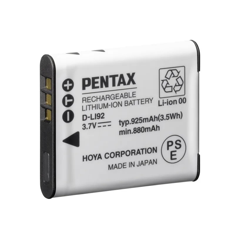 The Pentax D-LI92 features lithium technology, which provides maximum battery life and maximum power. It also features No Memory Effect that lets you recharge partially drained batteries without reducing runtime.