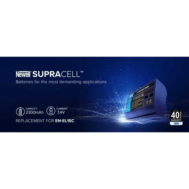 Newell SupraCell EN-EL15C is an innovative replacement battery designed for cameras. The cells and modern electronics used in it will satisfy even the most demanding users. The SupraCell line was created especially for intensive use, as well as very frequent charging and discharging. The presented cell offers up to 2300 mAh capacity. Thanks to the resistance to extreme temperatures, you will successfully use it while working on photos and films both in the winter landscape, and during hot days. With a 40-month warranty, the revolutionary Newell SupraCell battery will accompany you for many years, and in case of any failure will be quickly replaced by a new one by the manufacturer!