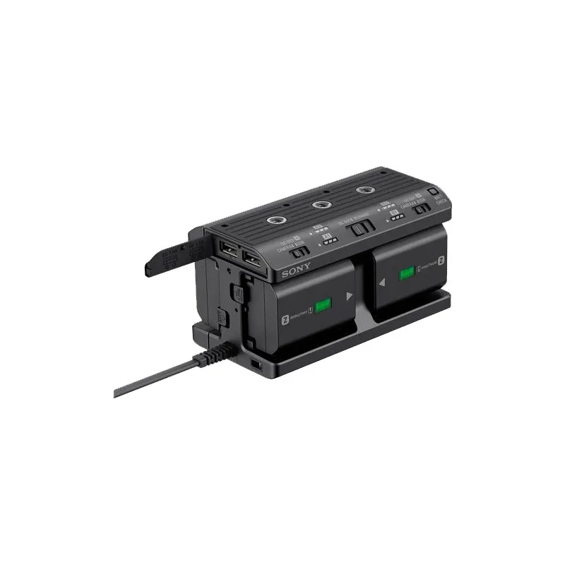 This battery adapter can quickly charge up to four NP-FZ100 Z-series batteries via AC adapter within about 480 minutes. Power charge condition is indicated in a 3-level LED when the “remaining battery power” check button is pressed.