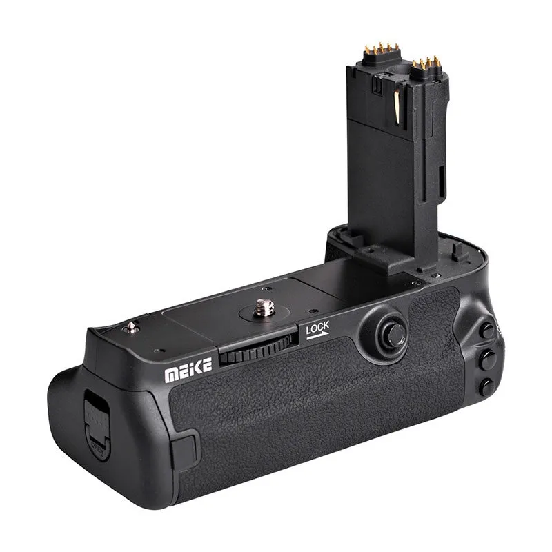 The grip is equipped with convenient controls, including a shutter release button for portrait shooting, a shutter speed lock switch, a focus selector and an exposure lock button. You can use the grip with one or two optional LP-E6 li-ion batteries or six optional AA batteries. This Battery Pack from Meike is ideal for use with your SLR in portrait mode.
