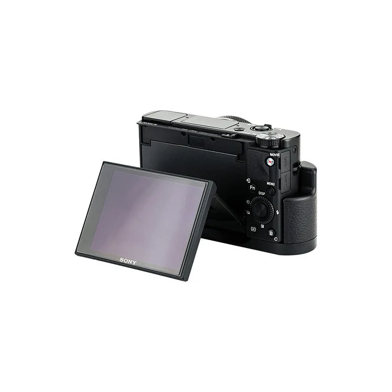The JJC HG-RX100 Camera Hand Grip is designed for the Sony RX100 Cameras. Thanks to the large opening at the bottom, the battery and memory card are easy to remove without removing the camera handle. The design of the HG-RX100 is of course not in the way of folding the display.
