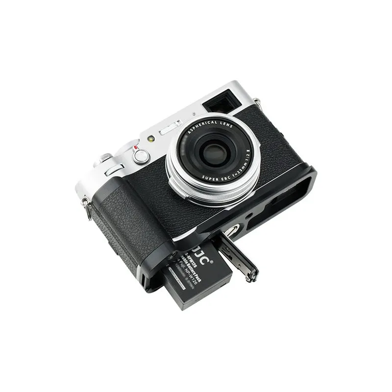 The JJC HG-X100V Camera Hand Grip is designed for The Fujifilm X-100V and X-100F cameras. Thanks to the large opening at the bottom, the battery and memory card are easy to remove without removing the handle from the camera.