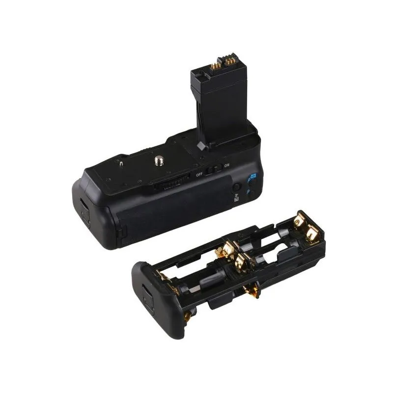 Allows the use of one or two LP-E8 type batteries. An alternative power supply is AA batteries, which can be inserted into the grip using a special case (supplied). When using the Ni-MH battery box, it provides better camera performance in cold temperatures and emergency power in the event that a charger is not available.