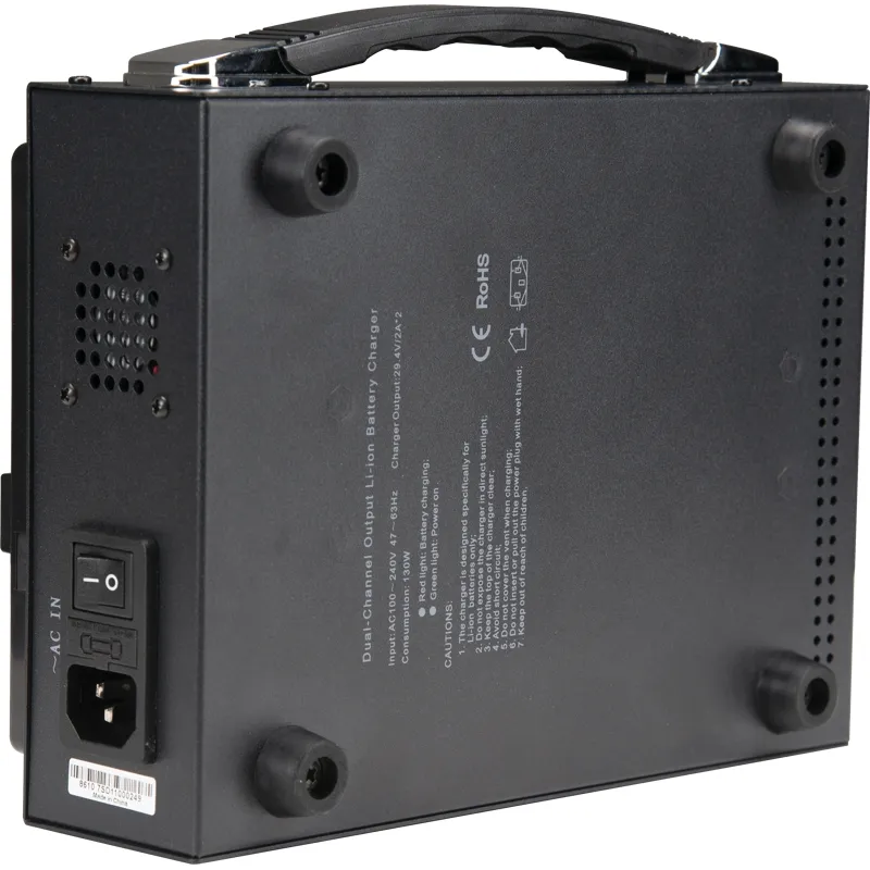 26V Dual V-Mount Battery ChargerThe NANLITE 26V V-mount battery charger come in single or dual charging options for both WH options; 230WH (BT-V-26V230) and 270Wh (BT-V-26V270).