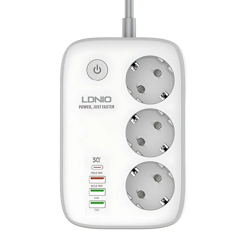 The Ldnio SEW3452 is a smart WiFi power strip and USB charger in one. With three F-type AC mains sockets and four USB ports, you can power all your everyday electrical devices, charge your smartphone, tablet or smartwatch, and control all your processes from the mobile app. The power strip can operate between 100 V and 250 V, making it perfect for international travel. No matter what you plug into the extension cord, your equipment will be protected by the device’s intelligent systems.