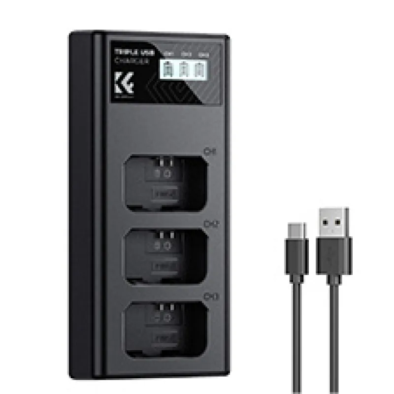 Effortlessly power your Sony NP-FW50 batteries with the K&F Concept 3-Pack Camera Charger. Featuring triple-slot charging, an intelligent LCD display, and versatile charging options via USB or Type-C, this charger ensures your batteries are always ready for action.