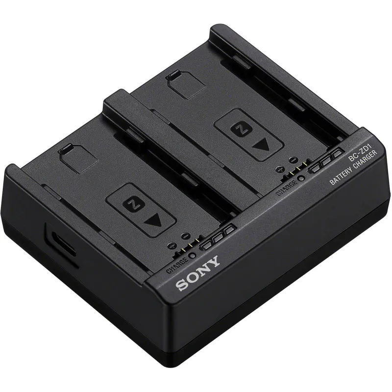 The BC-ZD1 is a charger with USB Power Delivery (PD) support for Sony’s high-capacity NP-FZ100 batteries. The BC-ZD1 can simultaneously charge two batteries in approximately 155 minutes (full charge) when connected to a USB PD compatible power supply with 30 W or higher output.