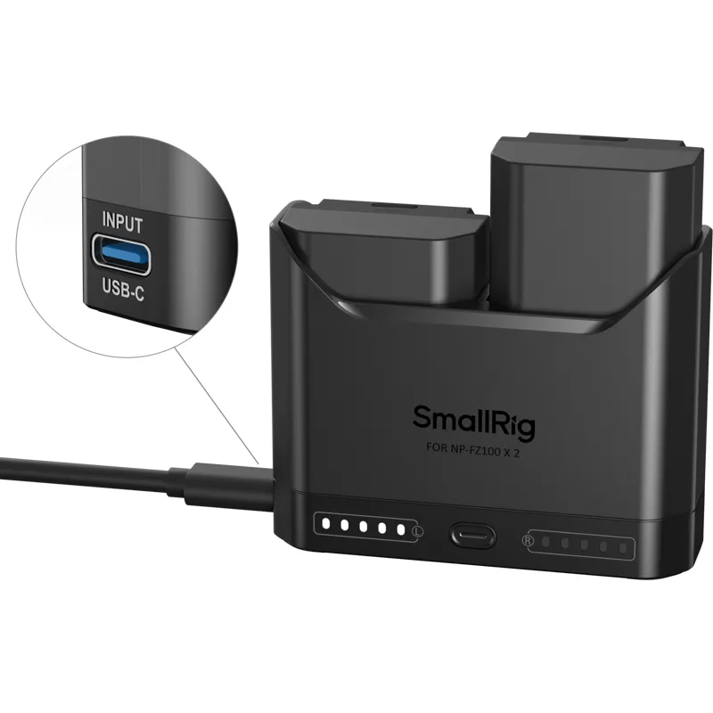 The SMALLRIG 5483 Turbo Charging Kit is designed for NP-FZ100 camera batteries, providing a fast and efficient charging solution. This kit includes a dual-channel charger that allows you to charge two batteries simultaneously, ensuring you never run out of power during your shoots.