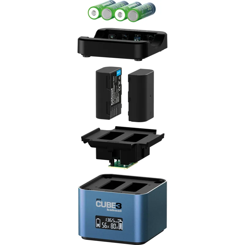 ProCube3 can charge both original camera batteries and batteries from other manufacturers.