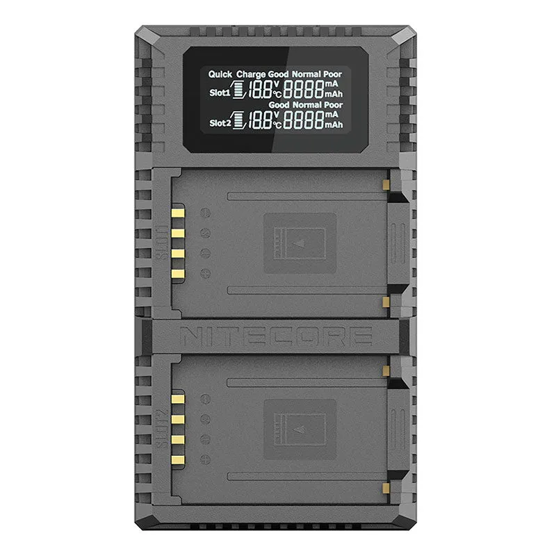 The Nitecore FX2 Pro Charger is specially designed for Fujifilm NP-TW125 batteries. The FX2 Pro battery charger has a maximum output current of 800mA in QC mode when charging one battery and a maximum of 600mA when simultaneously charging two batteries. In standard mode, the maximum output current is 500mA when charging one battery.