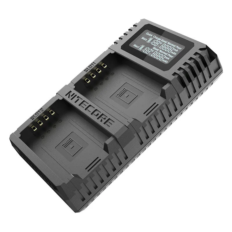 The Nitecore FX2 Pro Charger is specially designed for Fujifilm NP-TW125 batteries. The FX2 Pro battery charger has a maximum output current of 800mA in QC mode when charging one battery and a maximum of 600mA when simultaneously charging two batteries. In standard mode, the maximum output current is 500mA when charging one battery.