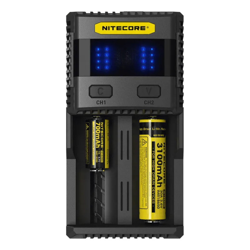 The Nitecore SC2 charger automatically detects the correct power of each battery and selects the right voltage and charging mode.