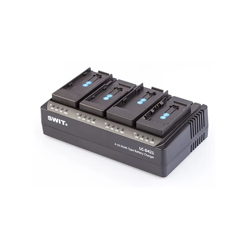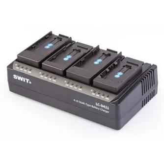 SWIT LC-D421 4-kanálová nabíjačka s voliteľnými batériovými platničkami. Nabíjačka LC-D421 obsahuje samotnú nabíjačku (bez platničiek) ku ktorej je možné vybrať až 4 rôzne batériov platničky pre kamery Sony, Panasonic, JVC alebo Canon. Výhodné riešenie ak máte viacero rôznych batérií a zariadení - jedna nabíjačke pre takmer všetky batérie a zariadenia.