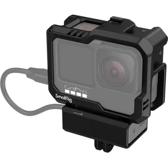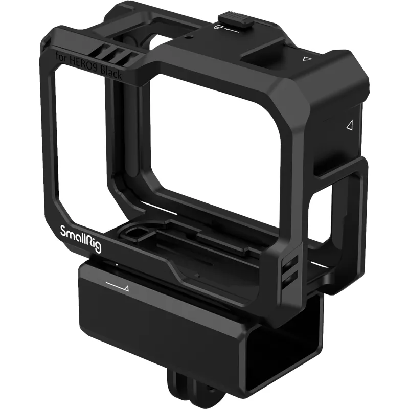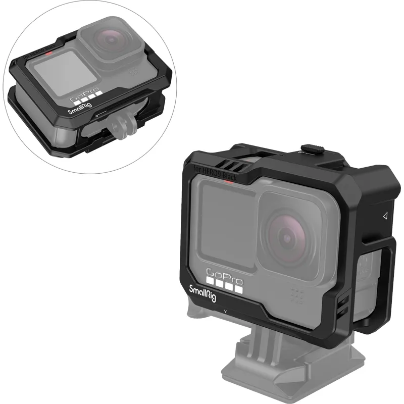 The SmallRig Cage Kit for GoPro Hero 12 / 11 / 10 / 9 Black 3083C is a complete cage. It comes with two cold shoe mounts compatible with GoPro Light Mod and regular microphone, LED video light, and offers a perfect solution for vlog filming. The bottom mount supports the original GoPro 7 / 8 microphone adapter; and the included side plate is interchangeable with the original plate to allow audio recording while charging.