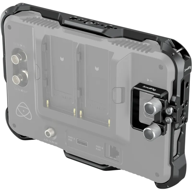 The SmallRig Atomos Shinobi 7 Cage (Kit) is an aluminum alloy full cage equipped with various accessory mounting points. It comes with NATO rail on top and bottom, 1/4 20, 3/8 16 threaded holes for quick release and stable attachment of magic arm and monitor mount and suits baseplate on the top for V mount battery and wireless image transmitter. The cage allows mounting the original Atomos sun hood and Built in sun hood on the top and bottom and features 1/4 20, 3/8 16 threaded holes on the side for the handle. Its cable clamp protects the monitor interface. There are four shoulder strap holes making it easy to carry the monitor over your shoulder and quick to remove the strap. The kit also includes a quick absorbing and bubble free screen protector to protect the monitor screen from fingerprints, water spray, dust, scratches, and knocks. ,