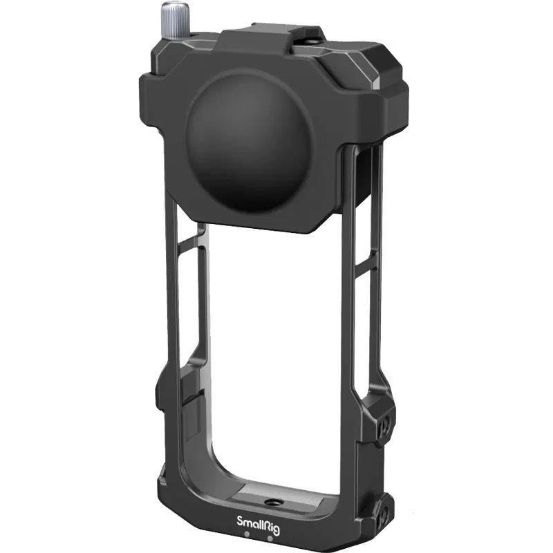 SmallRig Frame for Insta360 X3 4088B protects the camera and facilitates shooting by providing varied accessory mounting options. The formfitting frame features silicone cushions that prevent scratches and via a thumbscrew securely locks the camera which is put into the frame from its top. There are two cold shoes on both sides for accessories like a microphone and light. The included folding fingers are available to install on both sides for attaching selfie sticks, baseplates, etc. The built-in folding fingers at the bottom have a 1/4"-20 threaded hole for a tripod. Besides, a lens cap is included to prevent scratches.