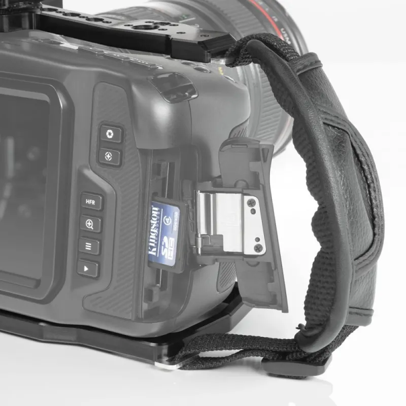 • Right side of the cage is designed to let you grasp and feel the camera, while the included strap firmly keeps your hand against the camera;