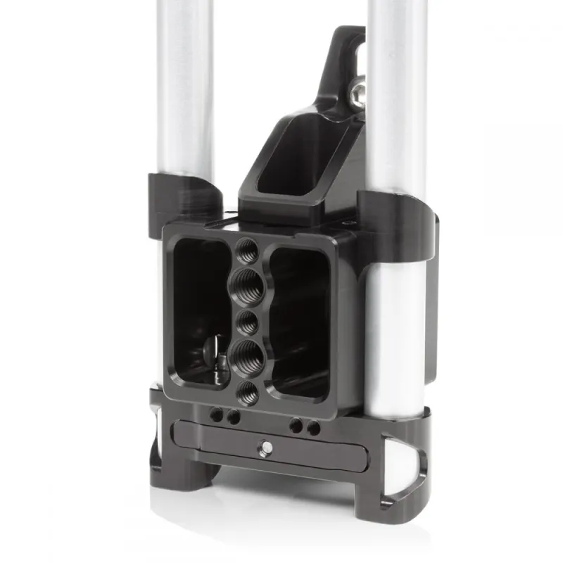 • (1) Cold shoe at the top of the cage to mount accessories like a microphone, Magic Arm (RPB2AHS), LED or our Push-Button Wooden Top Handle; Several ¼-20 and 3/8-16 threaded holes with anti-rotating pin