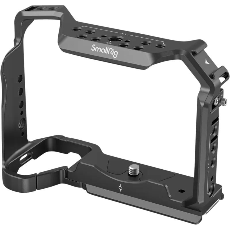Holes on the sides and bottom of the cage allow attaching such accessories as SmallRig Hand strap 2456 and Shoulder strap 2428.