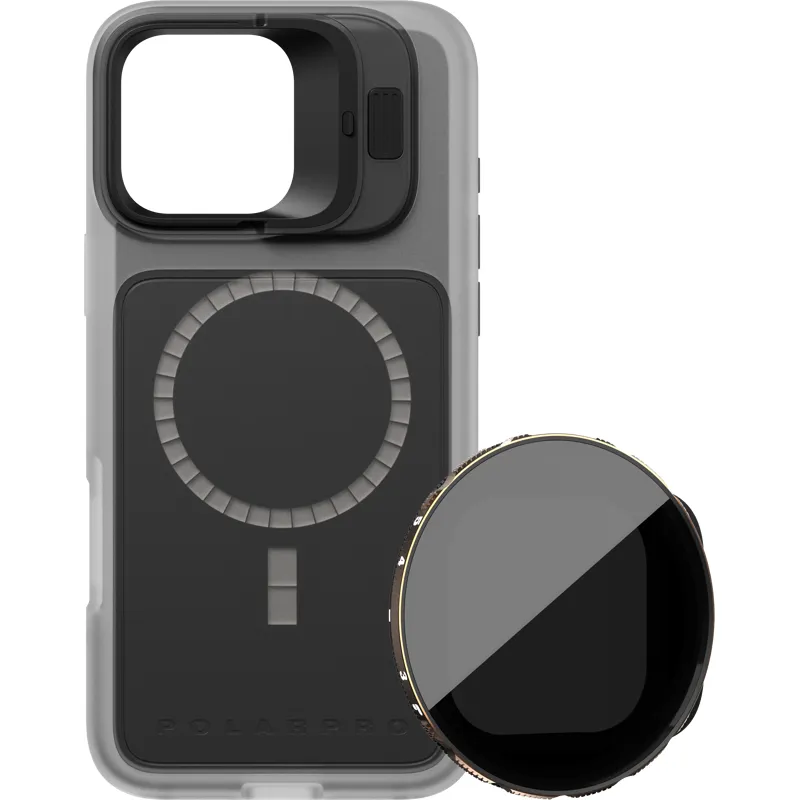 Included is a removable grip that positions your finger perfectly for the camera control button, featuring two 1/4 20 mounts for tripod and SSD attachment. The BaseCase offers a DSLR-like feel and compatibility with PolarPro Filters and Lenses.