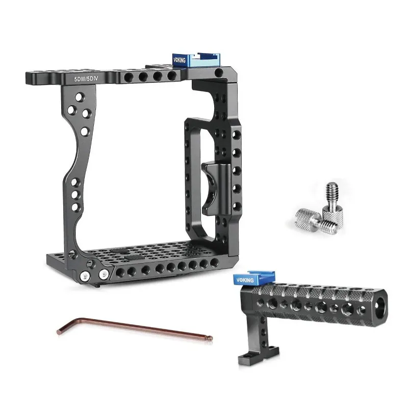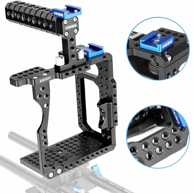The Meike VK-5D4K Vedio Cage is specially designed for Canon EOS 5D Mark III and Mark IV cameras. It prevents motion blur caused by vibrations or shaking during shooting. This ensures that your recordings are more stable, clear and professional. The included Top Handle provides extra comfort.
