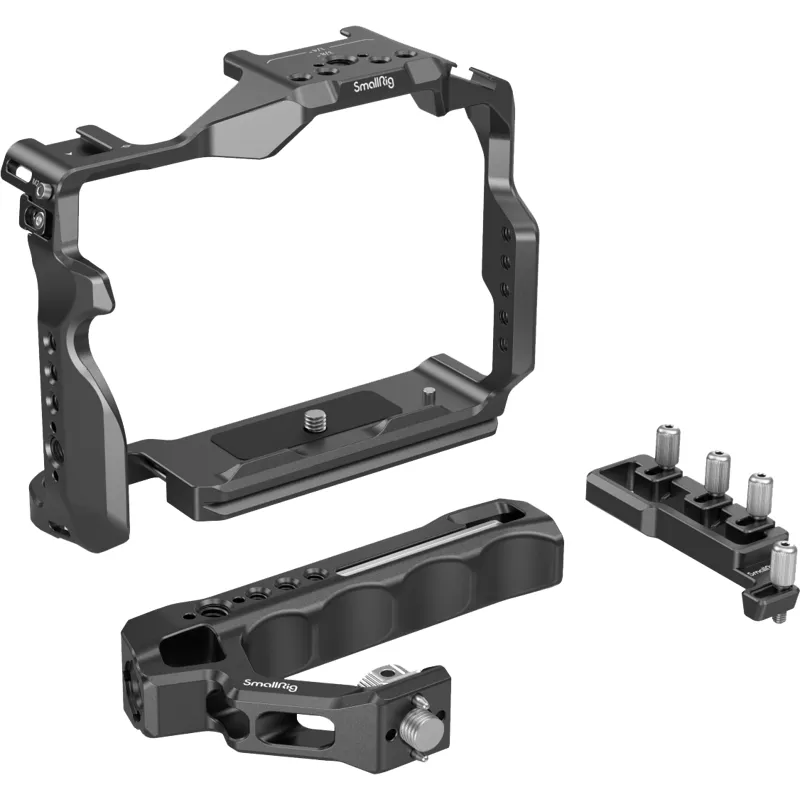 SmallRig Cage Kit for Nikon Z 8 3941 is portable and designed to assist with handheld shooting and attach accessories. It includes a cage, an HDMI & USB-C cable clamp, and a top handle. With a 1/4"-20 threaded hole, 3/8"-16 threaded hole, ARRI 3/8"-16 locating hole, NATO rail, and cold shoe mount, the kit can mount a monitor, microphone, tripod, follow focus, handle, etc. Among its three parts, the cage locks the camera via one bottom 1/4"-20 screw, one locating pin, and one side lock adapter; the ergonomic handle facilitates shooting in motion, providing a comfortable and stable user experience; and the HDMI & USB-C cable clamp, tightened by a hand screw, ensures stable signal transmission. Besides, a magnetic double-ended wrench is included for easy disassembly and assembly.
