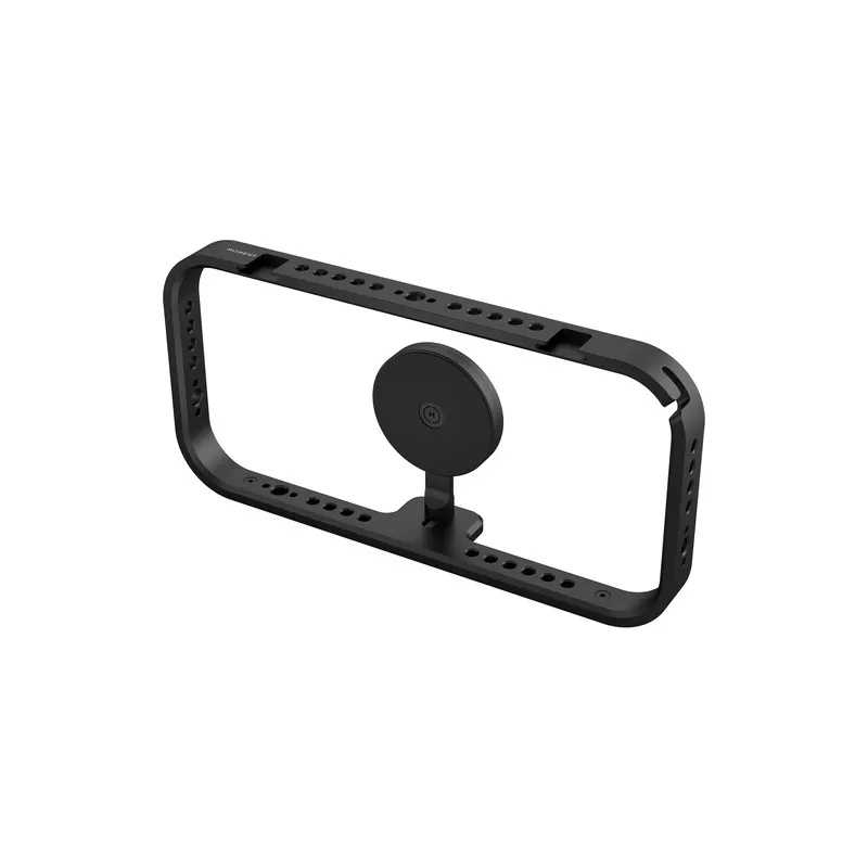 Mount your phone faster than ever with the most versatile video cage for mobile, and the first with MagSafe. With multiple cold shoe, ¼”-20, and ⅜”-16 attachment points, you can mount any of your favorite mics, lights, handles, or other filmmaking accessories. Made from precision-machined aluminum, it has built-in cable management slots to keep things organized, and an overall low profile makes it easy to pack. Our proprietary (M)Force magnets maintain a super-strong connection, and the mount is easily swappable for a traditional phone clamp if you want extra security. Meet your new dream rig for mobile filmmaking, endlessly customizable and ready for shooting on the go.