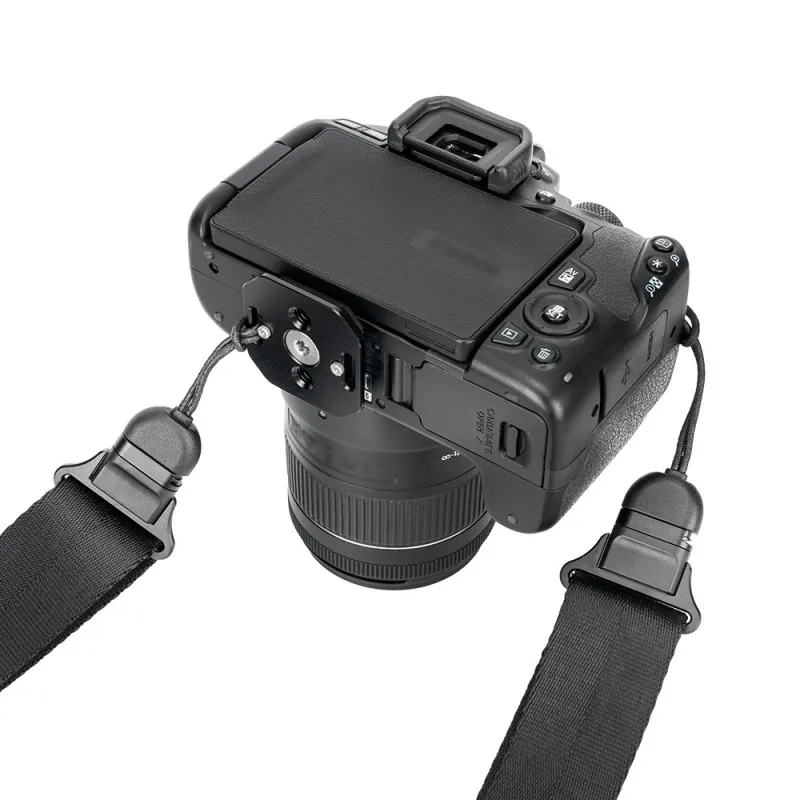 The quick release adapter allows you to quickly and securely attach and detach the JJC QRS M1 & JJC QRS D1 series quick release sling strap or JJC WS 1 wrist strap to your camera with our patented quick release buckle.