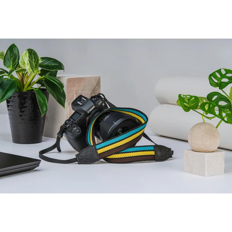 The strap is made from cotton and soft leather for durability and comfort of use. It is compatible with all camera brands and is available in a range of colors to personalize your camera to your liking.