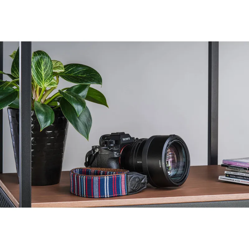 The strap is made from cotton and soft leather for durability and comfort of use. It is compatible with all camera brands and is available in a range of colors to personalize your camera to your liking.
